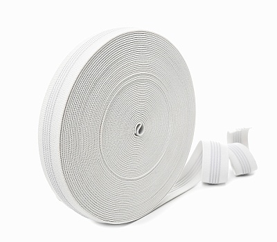 Тканая резинка с “выправленными наружу” латексными полосами на лицевой стороне, что позволяет резинке удерживать манжет на месте и не задираться при активных движениях.